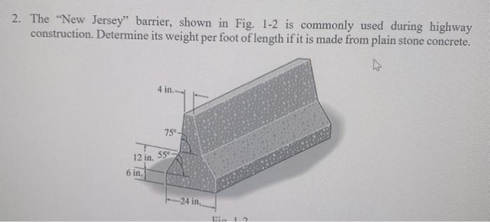 Solved 2 The New Jersey Barrier Shown In Fig 1 2 Is Chegg Com